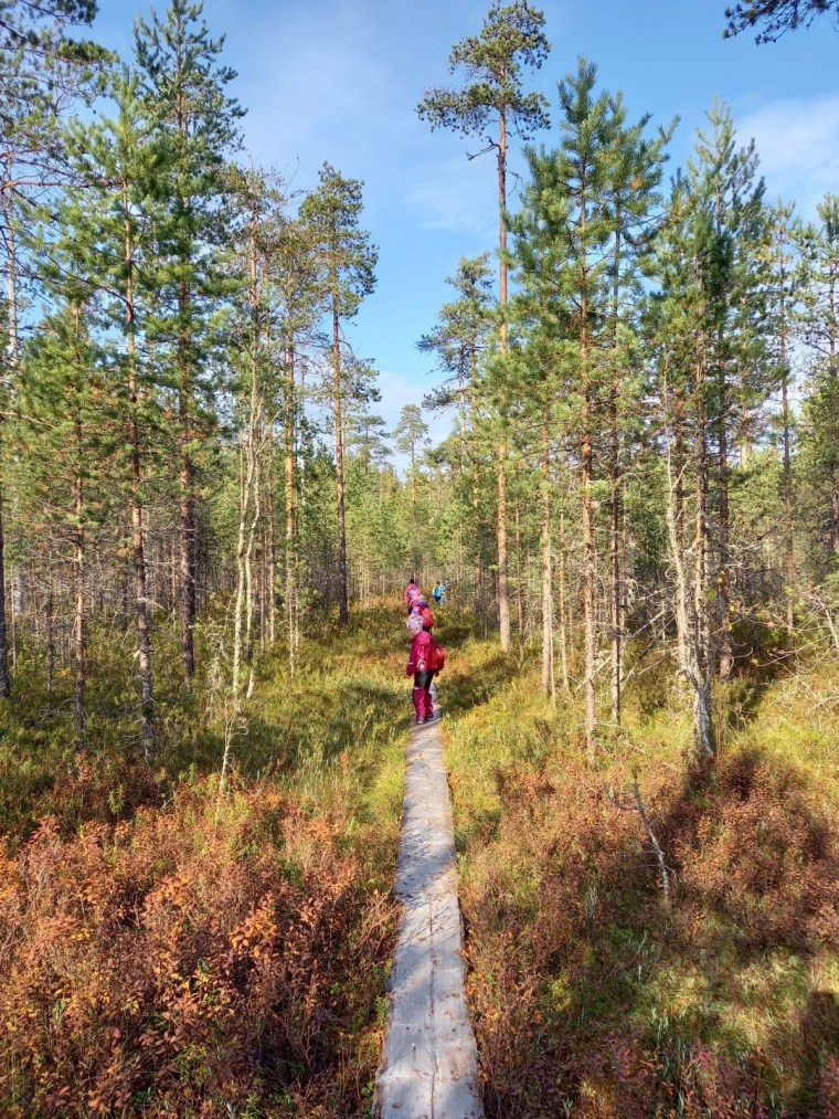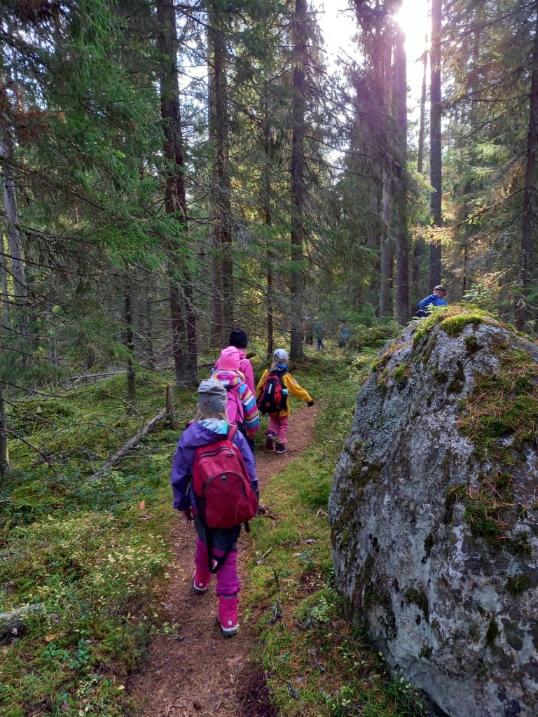 Evolla sudenpennut ja perhepartiolaiset lähtivät Kärppien kanssa Niemisjärvien suuntaan. Sudenpennut ja perhepartio kiersivät noin 3 km luontopolun. Kärppien oli tarkoitus kävellä noin 10 km leiripaikalle Kulottajalle, mutta kartta ja suunnistus eivät olleetkaan aivan yksiselitteiset. Onneksi Kärppien mieliala pysyi korkealla ja retkeily sujui muuttuneiden suunnitelmienkin kanssa. Luonto ja sää olivat mahtavat.
