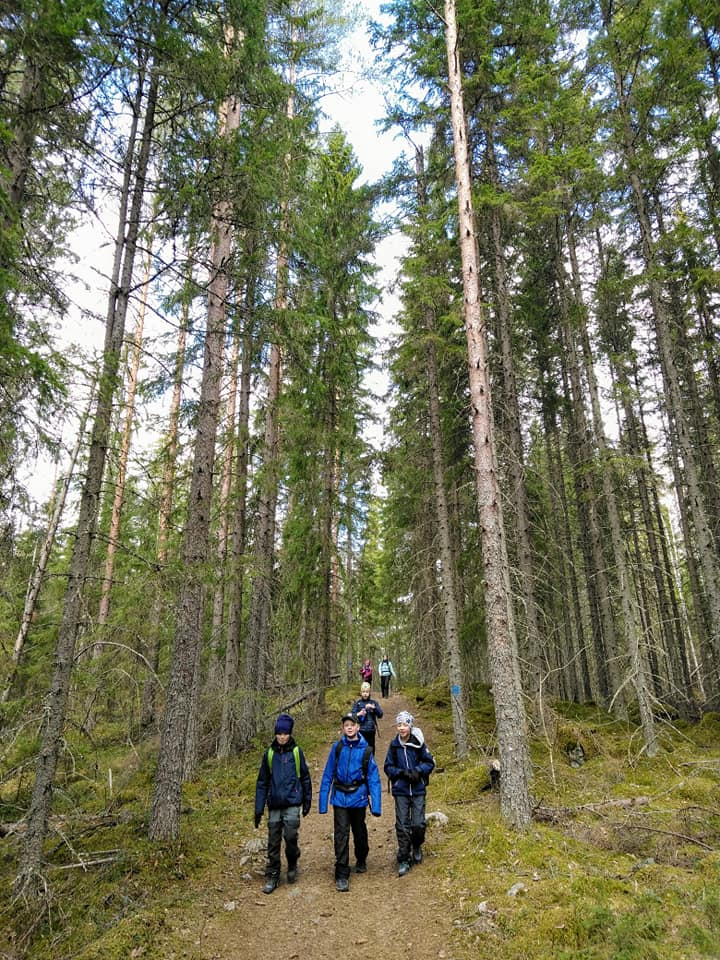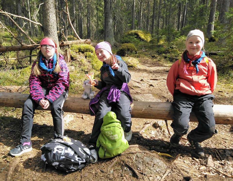 Evolla sudenpennut ja perhepartiolaiset lähtivät Kärppien kanssa Niemisjärvien suuntaan. Sudenpennut ja perhepartio kiersivät noin 3 km luontopolun. Kärppien oli tarkoitus kävellä noin 10 km leiripaikalle Kulottajalle, mutta kartta ja suunnistus eivät olleetkaan aivan yksiselitteiset. Onneksi Kärppien mieliala pysyi korkealla ja retkeily sujui muuttuneiden suunnitelmienkin kanssa. Luonto ja sää olivat mahtavat.