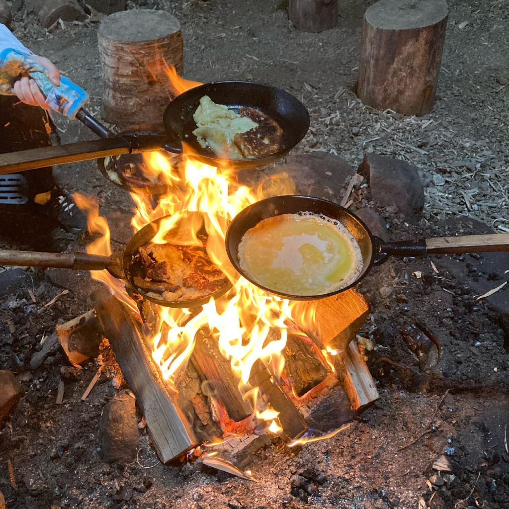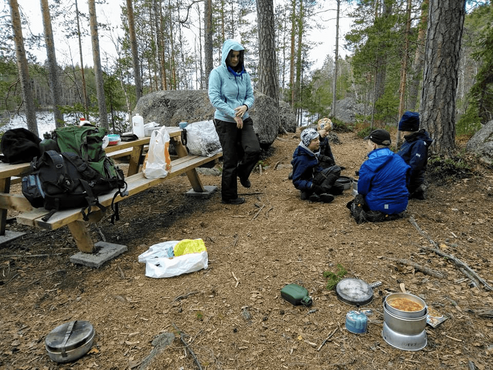 Jokainen ryhmä valmistaa oman lounaansa maastossa. Ruokahan maistuu aina parhaalta kun mausteena on raikas ilma ja nälkä!
