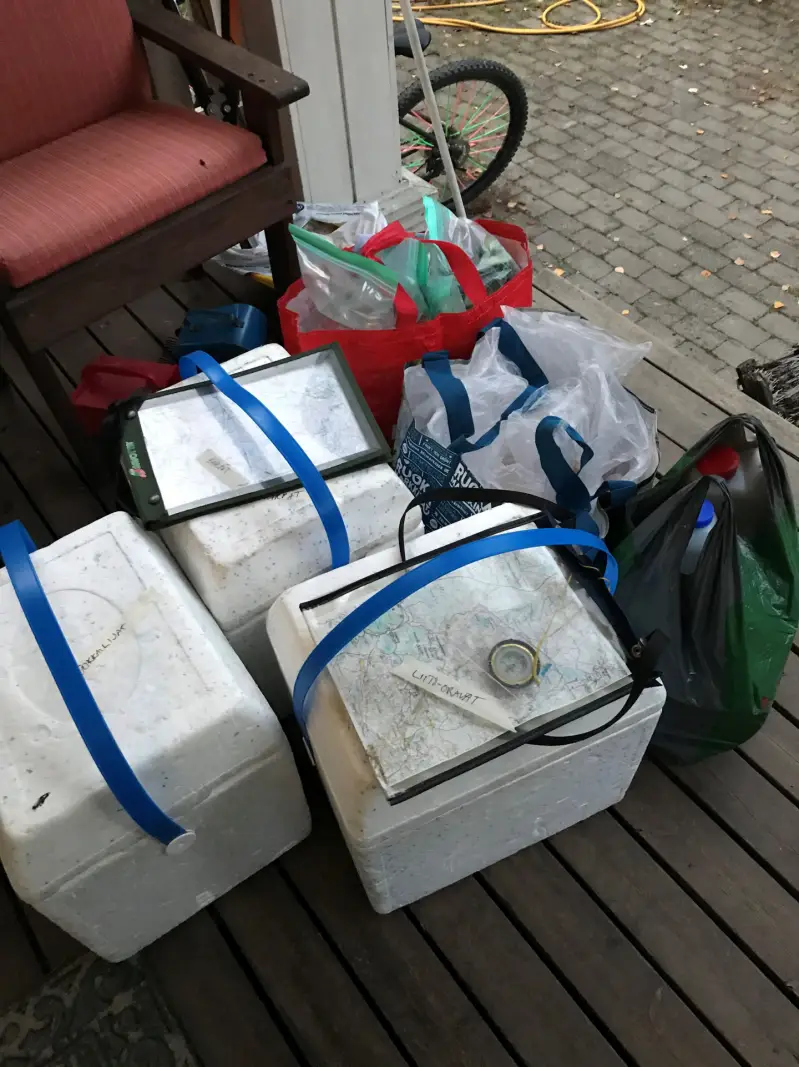 Ennen retkeä suunniteltiin reittiä, paikkaa ja ruokaa. Seuraavassa kuvassa noin 50 hengen päivän retkieväät.