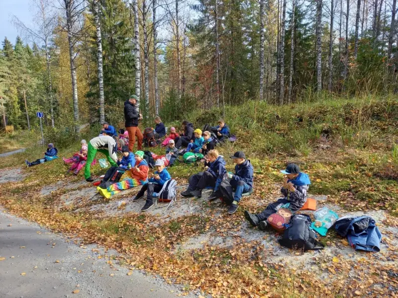 Evolla sudenpennut ja perhepartiolaiset lähtivät Kärppien kanssa Niemisjärvien suuntaan. Sudenpennut ja perhepartio kiersivät noin 3 km luontopolun. Kärppien oli tarkoitus kävellä noin 10 km leiripaikalle Kulottajalle, mutta kartta ja suunnistus eivät olleetkaan aivan yksiselitteiset. Onneksi Kärppien mieliala pysyi korkealla ja retkeily sujui muuttuneiden suunnitelmienkin kanssa. Luonto ja sää olivat mahtavat.